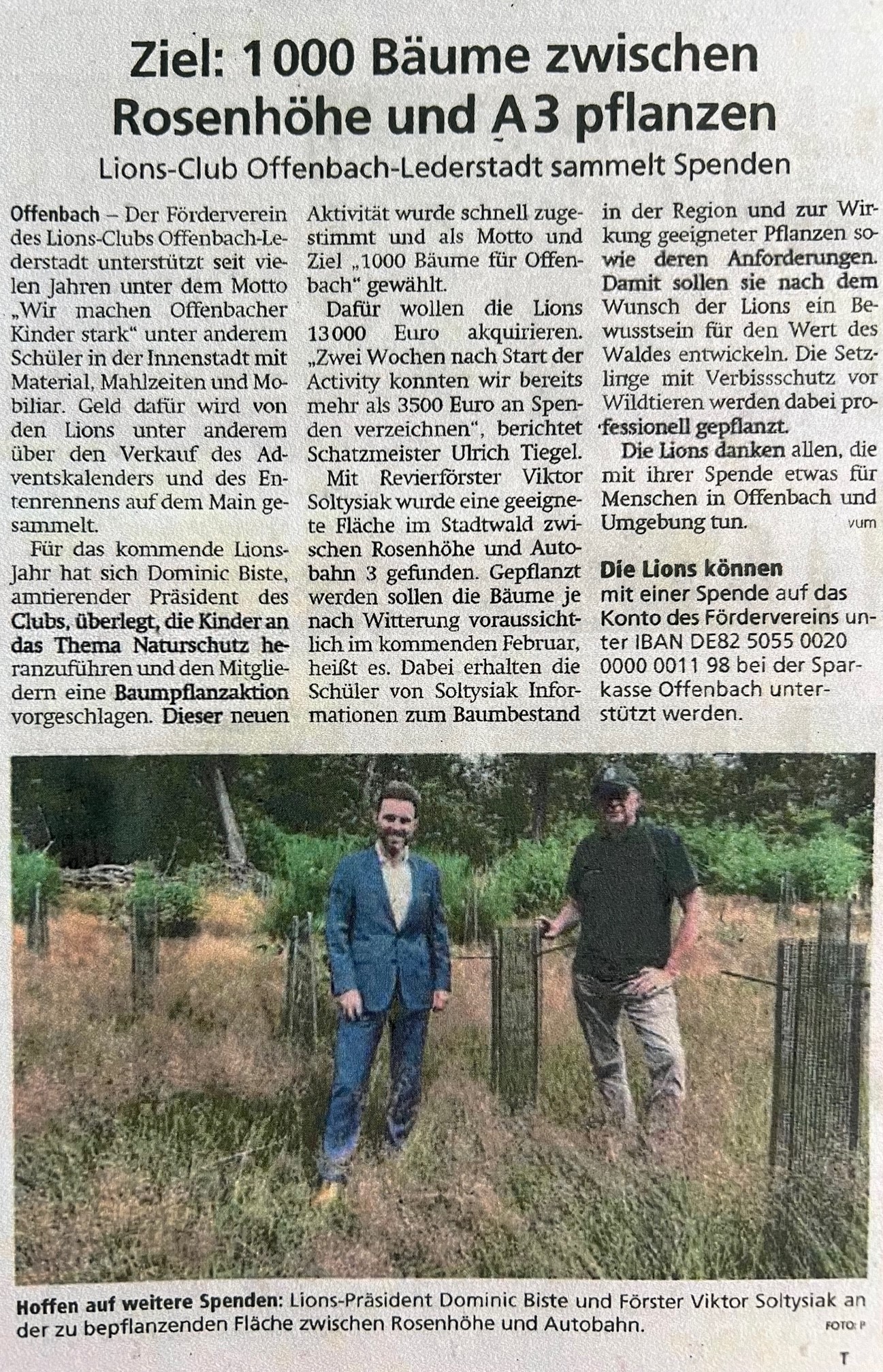 Der Lions Club Offenbach-Lederstadt ist seit 1987 in der Lederstadt Offenbach aktiv. Mit derzeit 42 Mitgliedern für wir verschiedene ehrenamtliche Projekte durch. So konnten wir bereits zahlreiche caritative und gemeinnützige Organisationen finanziell und tatkräftig unterstützen.